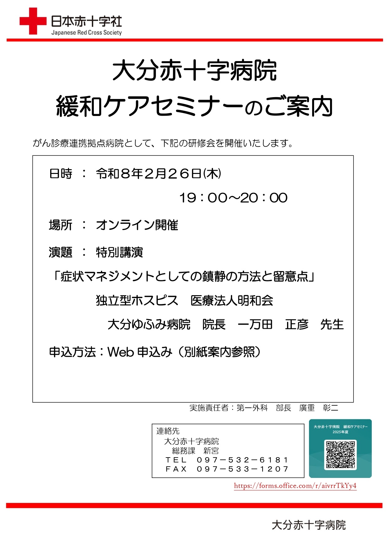 大分赤十字病院では、がん診療連携拠点病院として緩和ケアの普及・啓発に取り組んでいます。